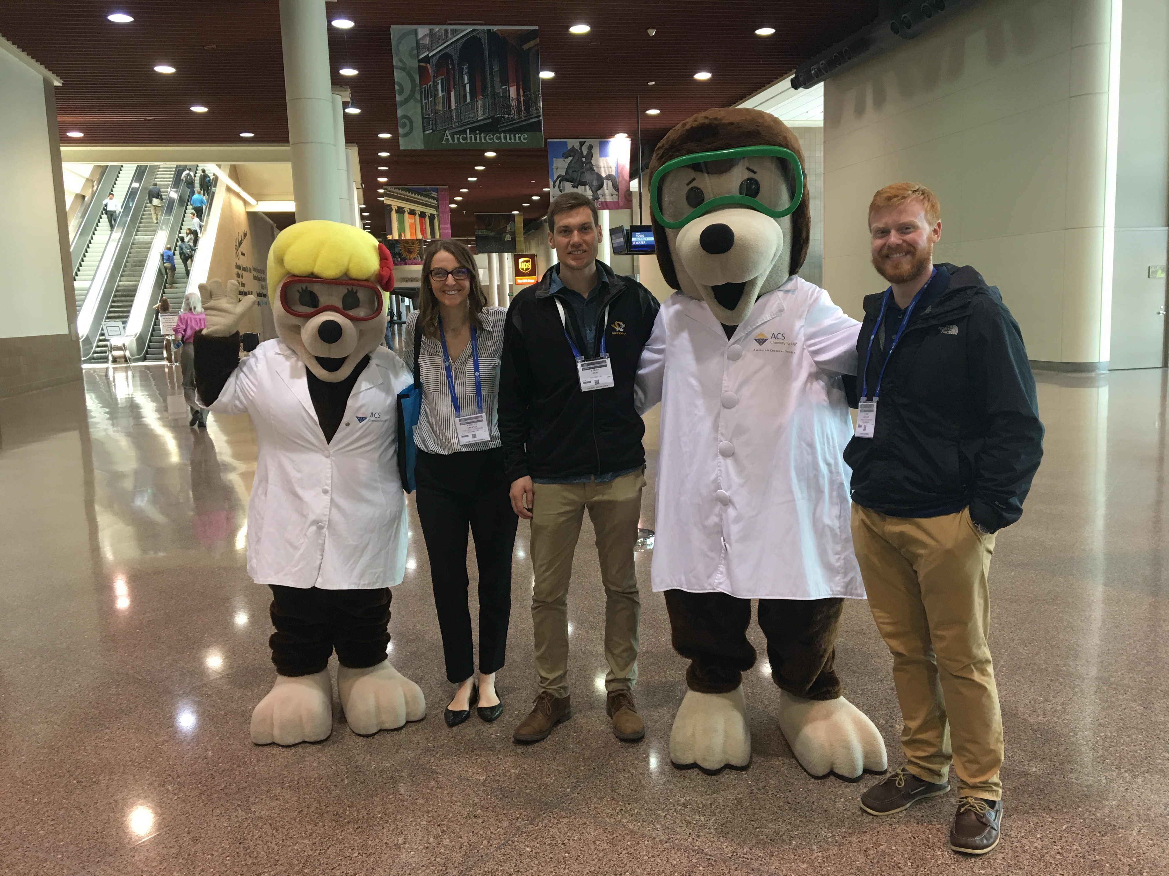 | ACS, NOLA, 2018: Kaitlyn, Ethan, and Casey hugging moles. Such nerds! And great scientists too: They also showed a great poster. |
