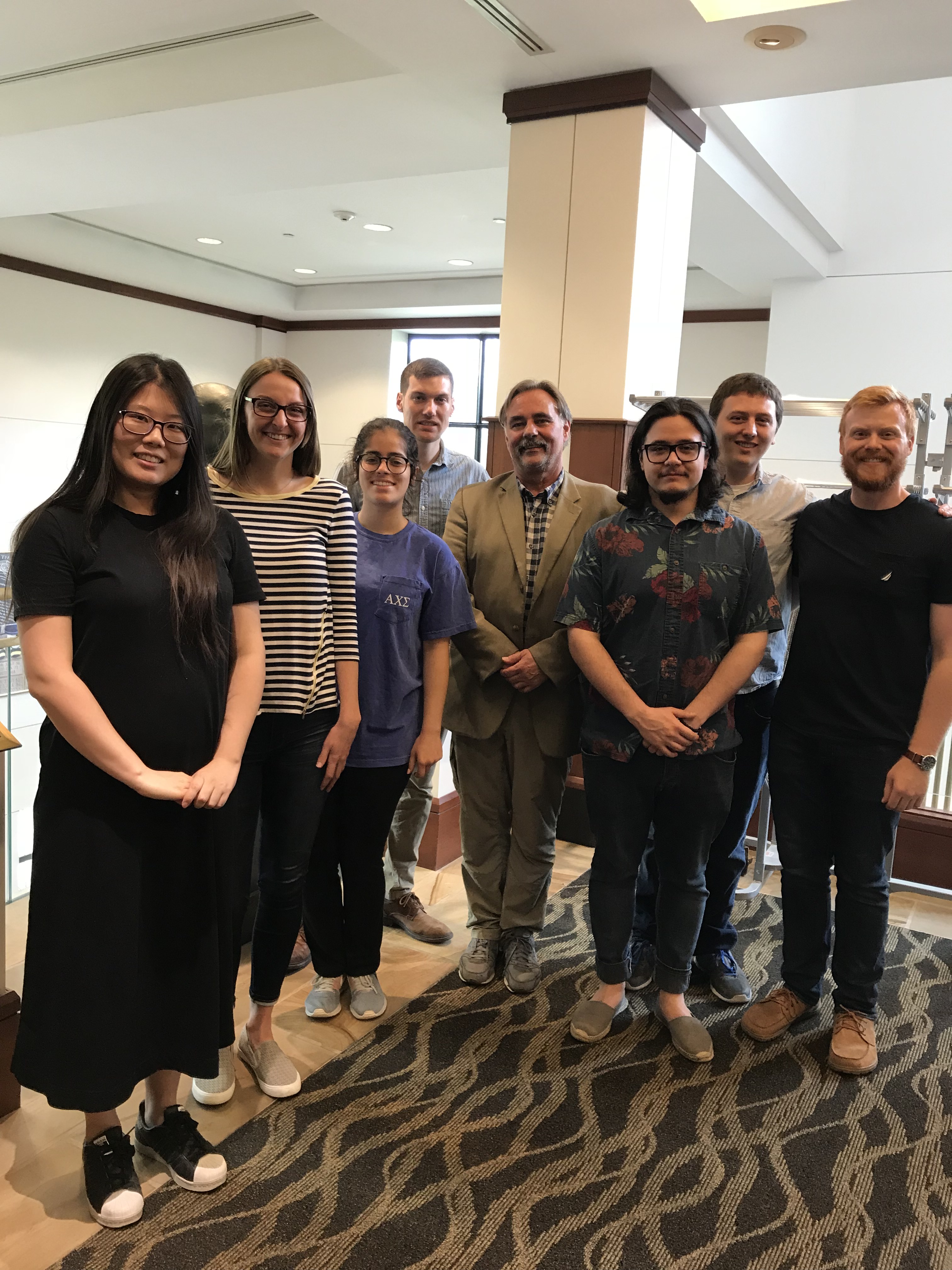 May 3, 2018: SP18 Group Lunch at the Faculty Club at the MU Reynolds Center. From left: Kathy Yang, Kaitlyn Chetney, Ethan Zars, Nicohl Corretjer, Rainer Glaser, Ryan Hoerr, Joseph Schell, and Casey Hawkins |
